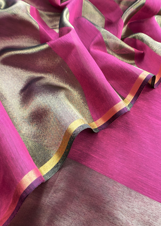 Designer Bright Pink Handloom silk suit with Zari weaving
