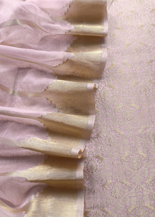 Baby Pink Banarasi Silk Brocade Suit With Organza Dupatta