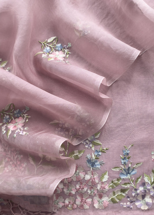 Pink Embroidered Organza Silk Suit With Dupatta