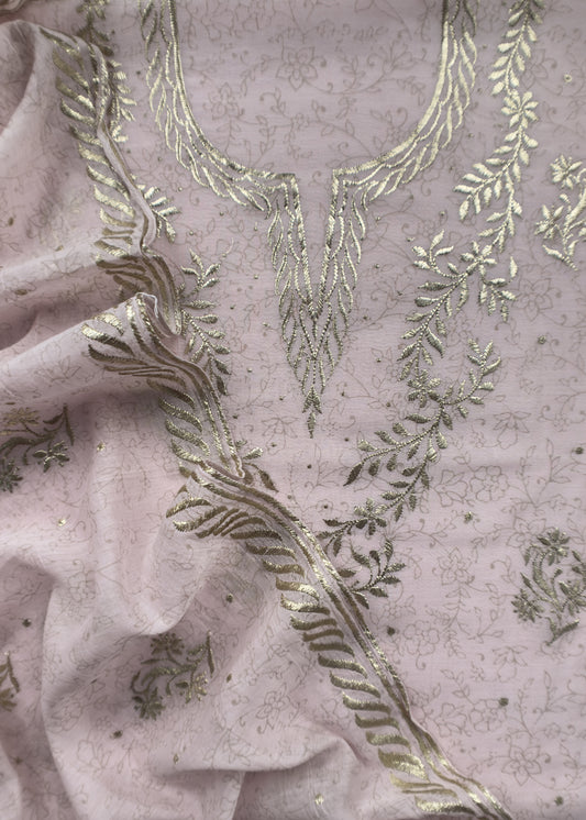 Space Pink Linen Silk Suit Fabric With Zardosi Embroidery