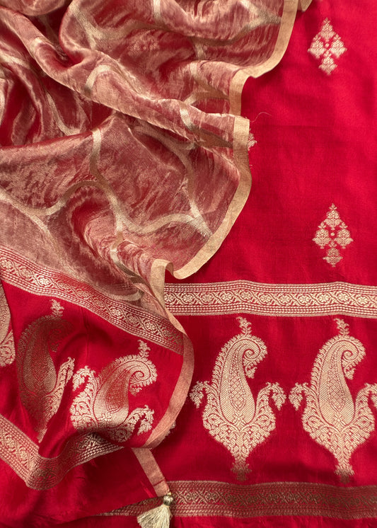 Red Pure Banarasi Silk Kurta And Tissue Silk Dupatta With Cut Work Zari Weaving