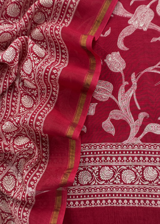 Red Maheshwari Silk Unstitched Suit With Dupatta