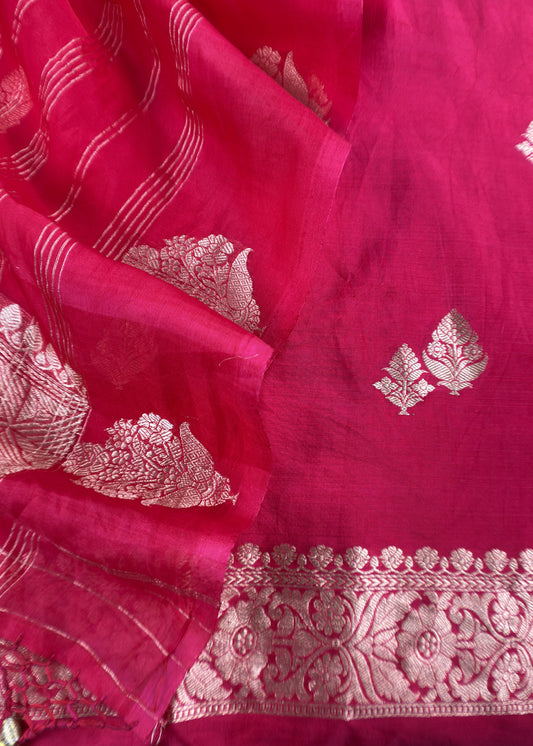 Deep Pink Handloom Silk Suit With Zardosi Embroidery