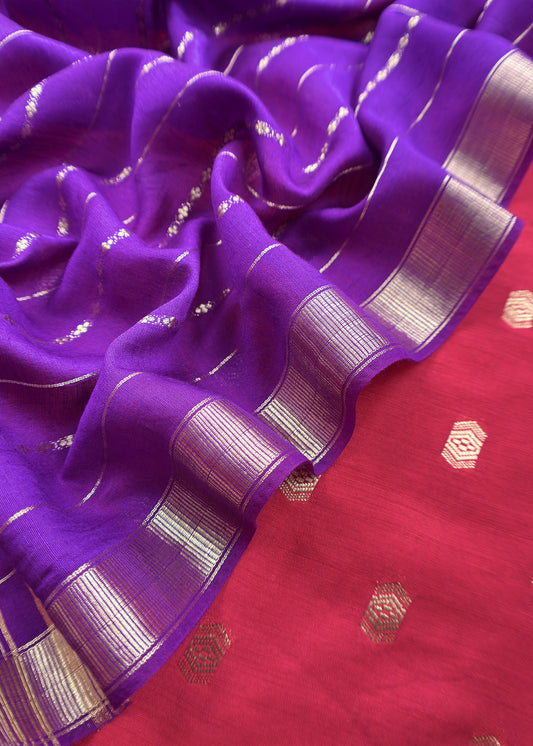 Pink and Purple Pure Assamese Silk Suit Fabric With Zari Weaving