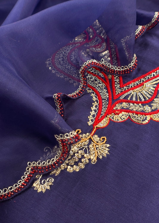 Blue Dupion Silk Kurta and Kora Silk Dupatta With Handwork