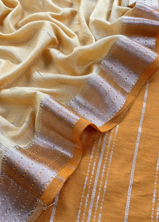 Mustard Linen Chanderi Unstitched Suit With Pichwai Jamdani Weaving