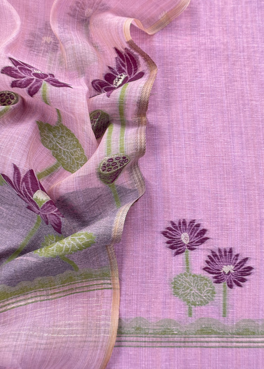 Lilac Floral Jamdani Weave Unstitched Chanderi Suit
