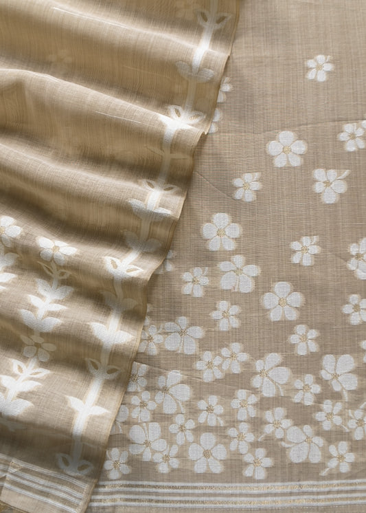 Beige Jamdani Weaved Unstitched Suit In Chanderi