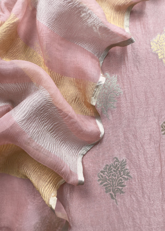 Baby Pink Unstitched Tissue Silk Suit With Dupatta