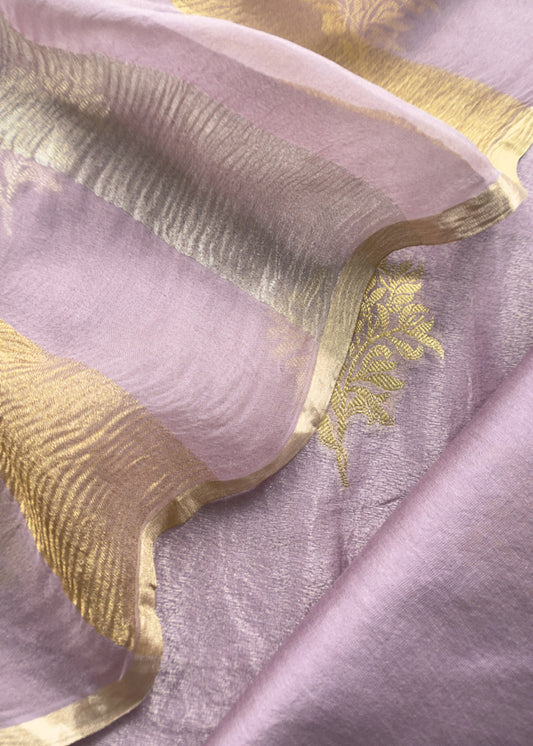 Iris Purple Handloom Banarasi Unstitched Suit In Kora Tissue Silk