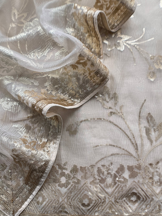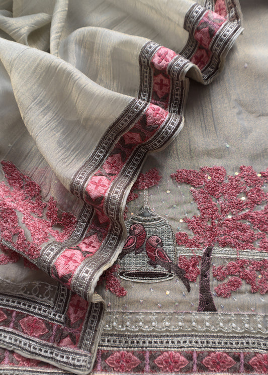 Ivory Crushed Tissue Silk Suit With Chidiya Embroidery
