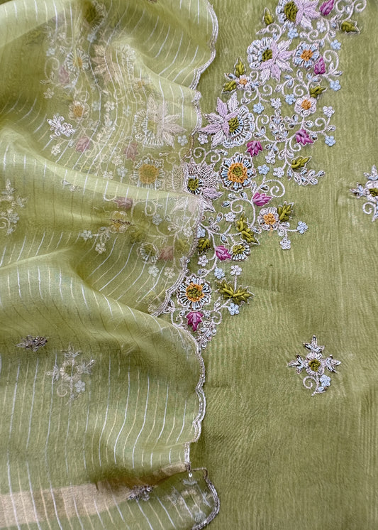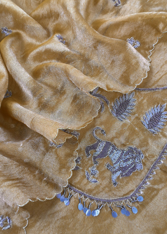 Mustard Handloom Tissue Silk Suit Fabric With Shikagarh Handwork