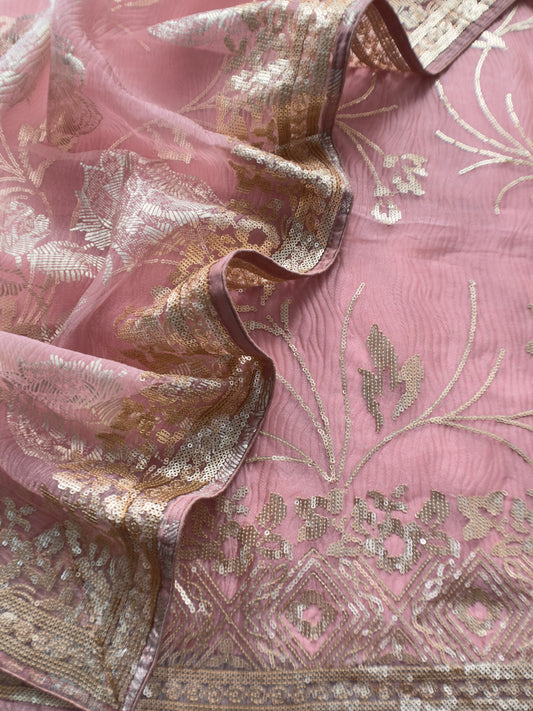 Baby Pink Unstitched Tissue Silk Suit With Dupatta
