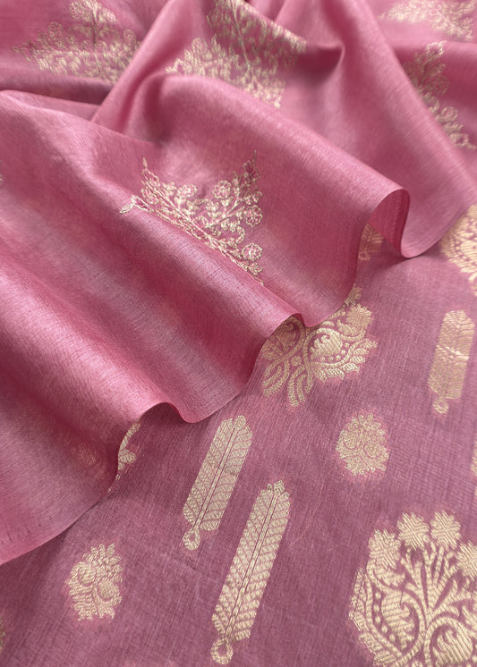 Sahiba 2025 Taffy Pink Handloom Desi Tussar Kurta With Zardosi Embroidery And Handwoven Tissue dupatta