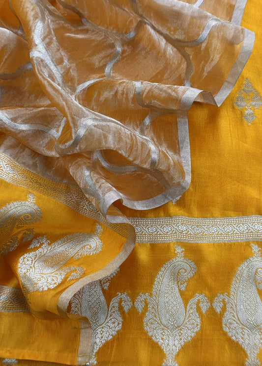 Yellow Pure Banarasi Silk Kurta And Tissue Silk Dupatta With Cut Work Zari Weaving
