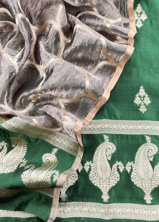 Green Pure Banarasi Silk Kurta And Tissue Silk Dupatta With Cut Work Zari Weaving