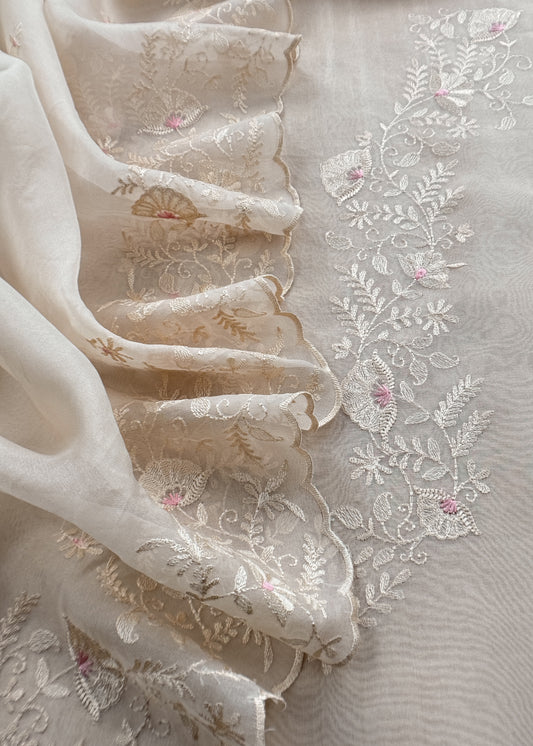 Off White Pure Organza Unstitched Suit With Resham Thread Embroidery