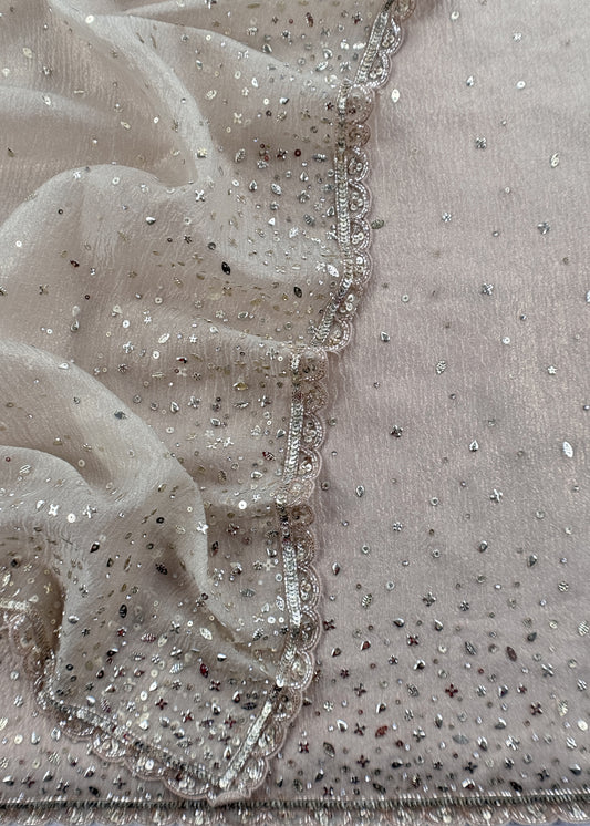 Dove White Pure Crushed Tissue Silk Suit Fabric With Mukaish And Hand Work