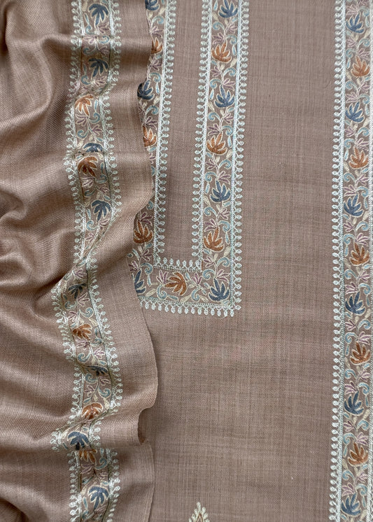 Dark Beige Unstitched Woolen Suit With Aari Embroidery Work