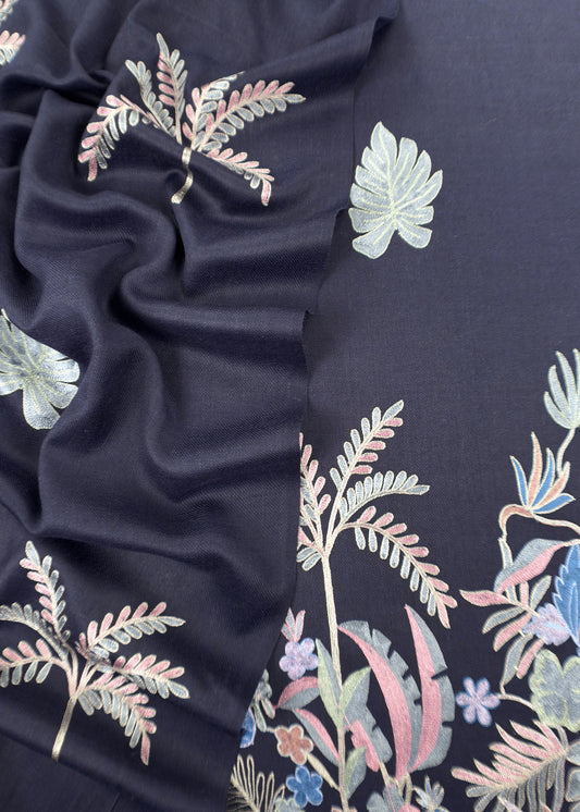 Black Pure Merino Wool With Beautiful Aari Embroidery