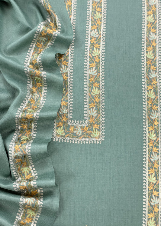 Baby Green Pure Merino Wool With Beautiful Aari Embroidery