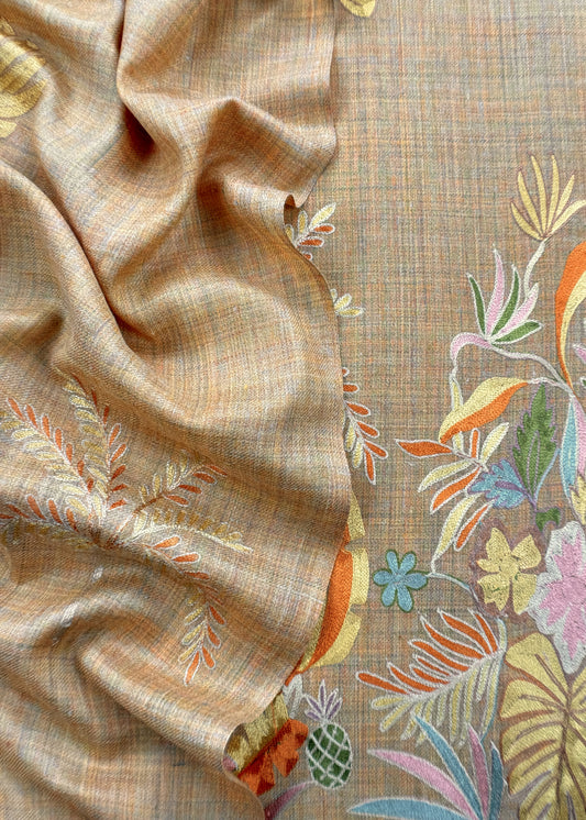 Beige Pure Merino Wool With Beautiful Aari Embroidery