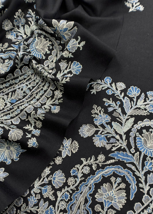 Jet Black Pure Merino wool with Beautiful Aari Embroidery