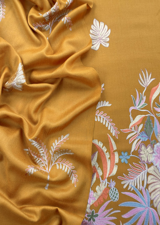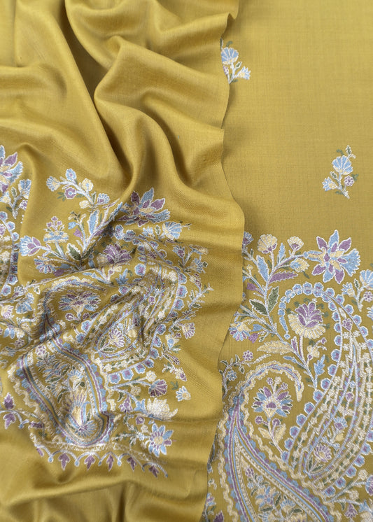 Maize Yellow Pure Merino Wool With Beautiful Aari Embroidery