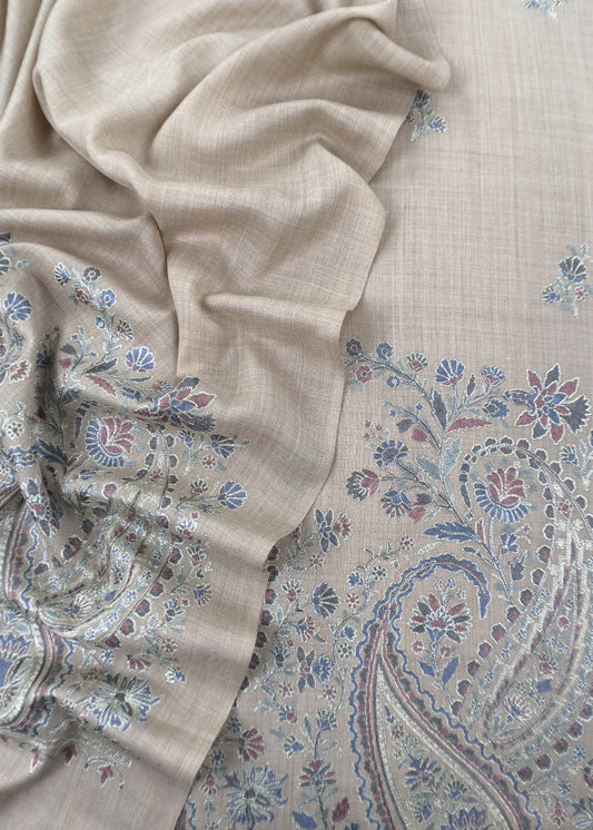 Beige Pure Merino wool with Beautiful Aari embroidery