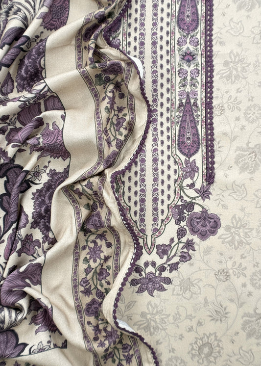 White And Purple Winters Spun Pashmina Digital Print Suit Fabric