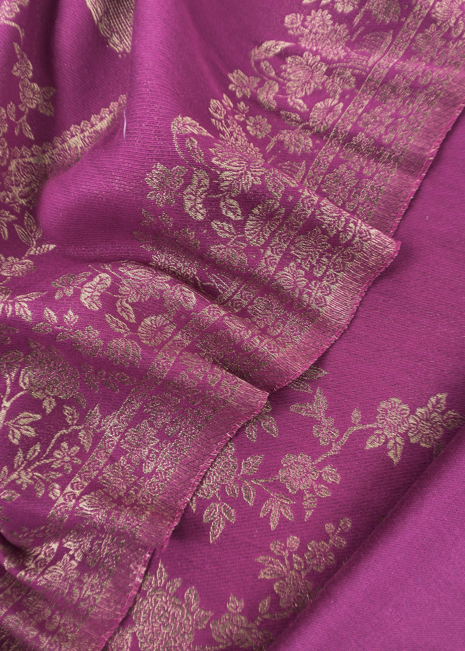 This woolen suit includes a beautifully woven Kani kurta in woolen, a matching Kani weaving woolen double shaded dupatta in woolen, and a woolen bottom. It’s a perfect choice for weddings, festivals, or your formal occasions .