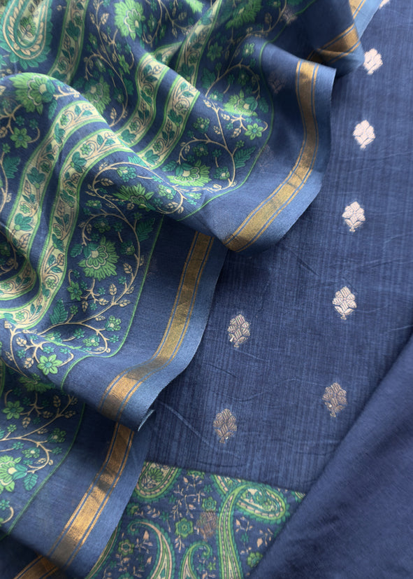 Blue And Green Maheshwari Silk Suit With Banarasi Bootis