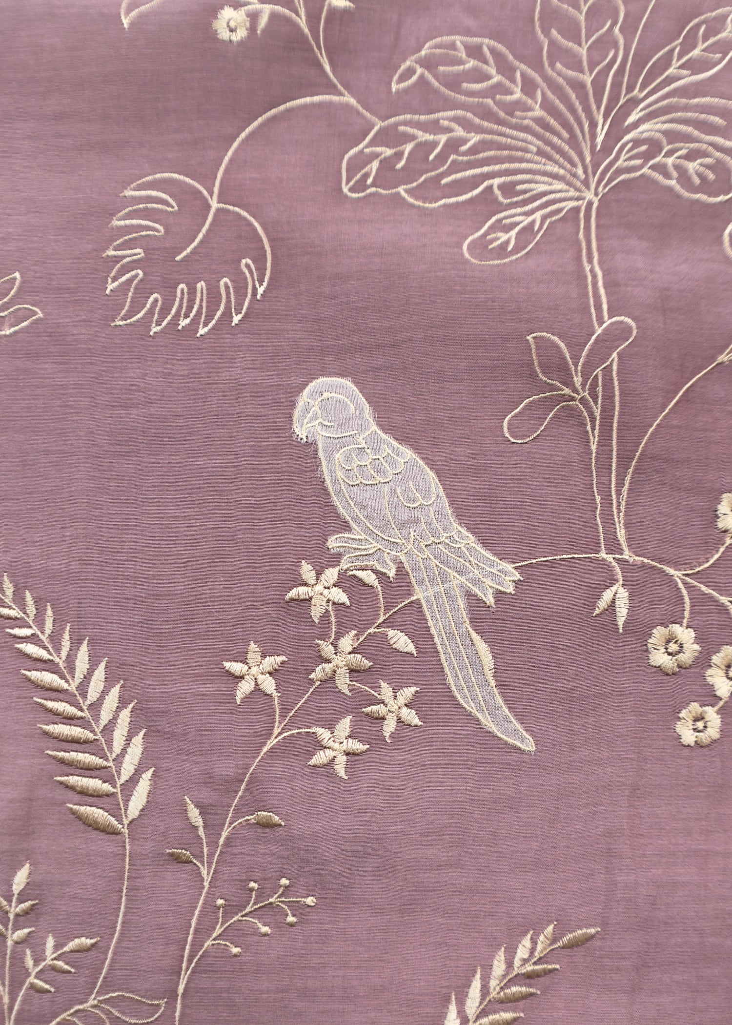 The pure mul cotton kurta is adorned with all over resham embroidered chidiya, flamingos and flowers is paired with designer look dupatta with vertical zari lurex stripes and matching plain bottom.