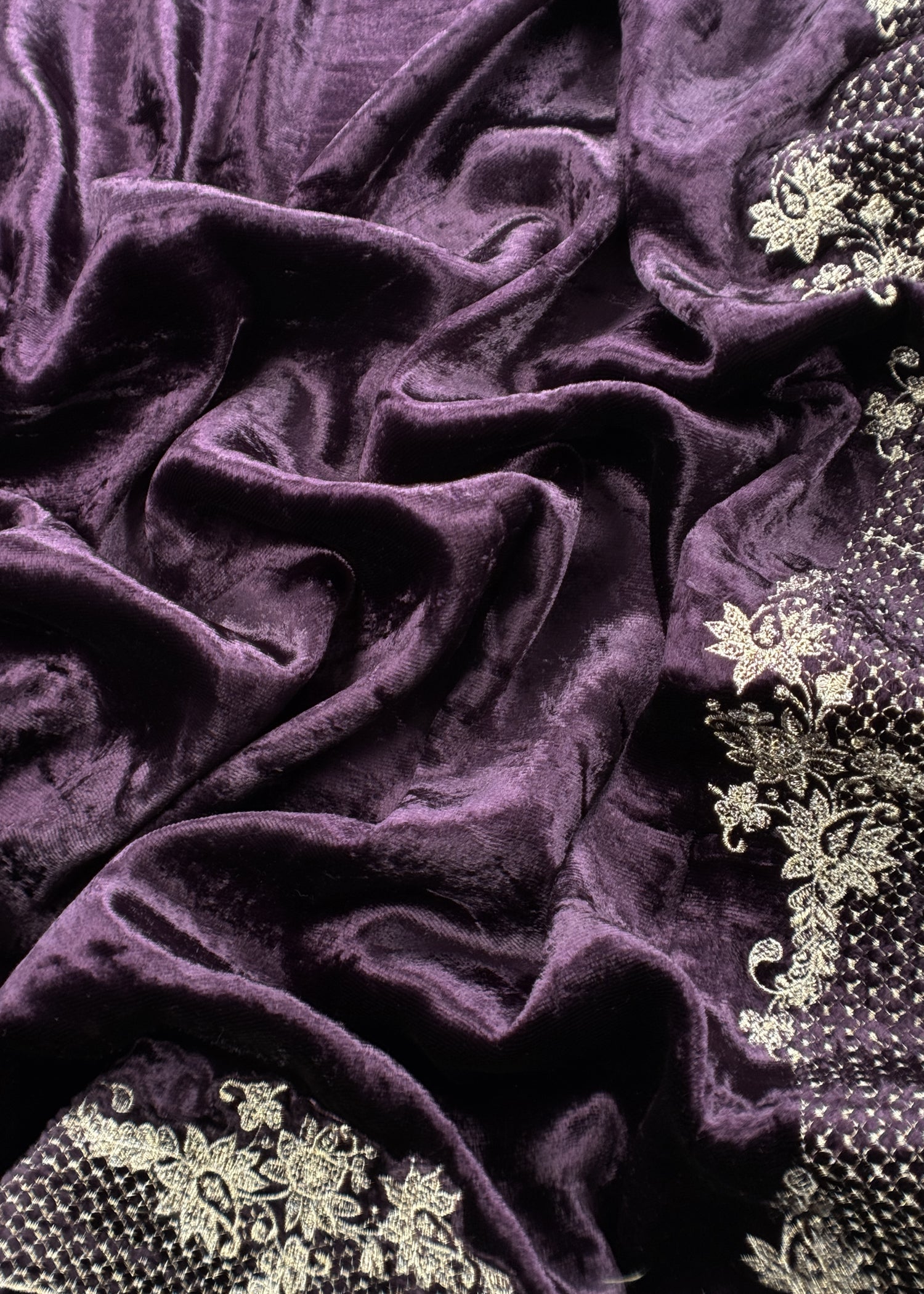 Affair Purple Brocade Silk Suit With Velvet Dupatta