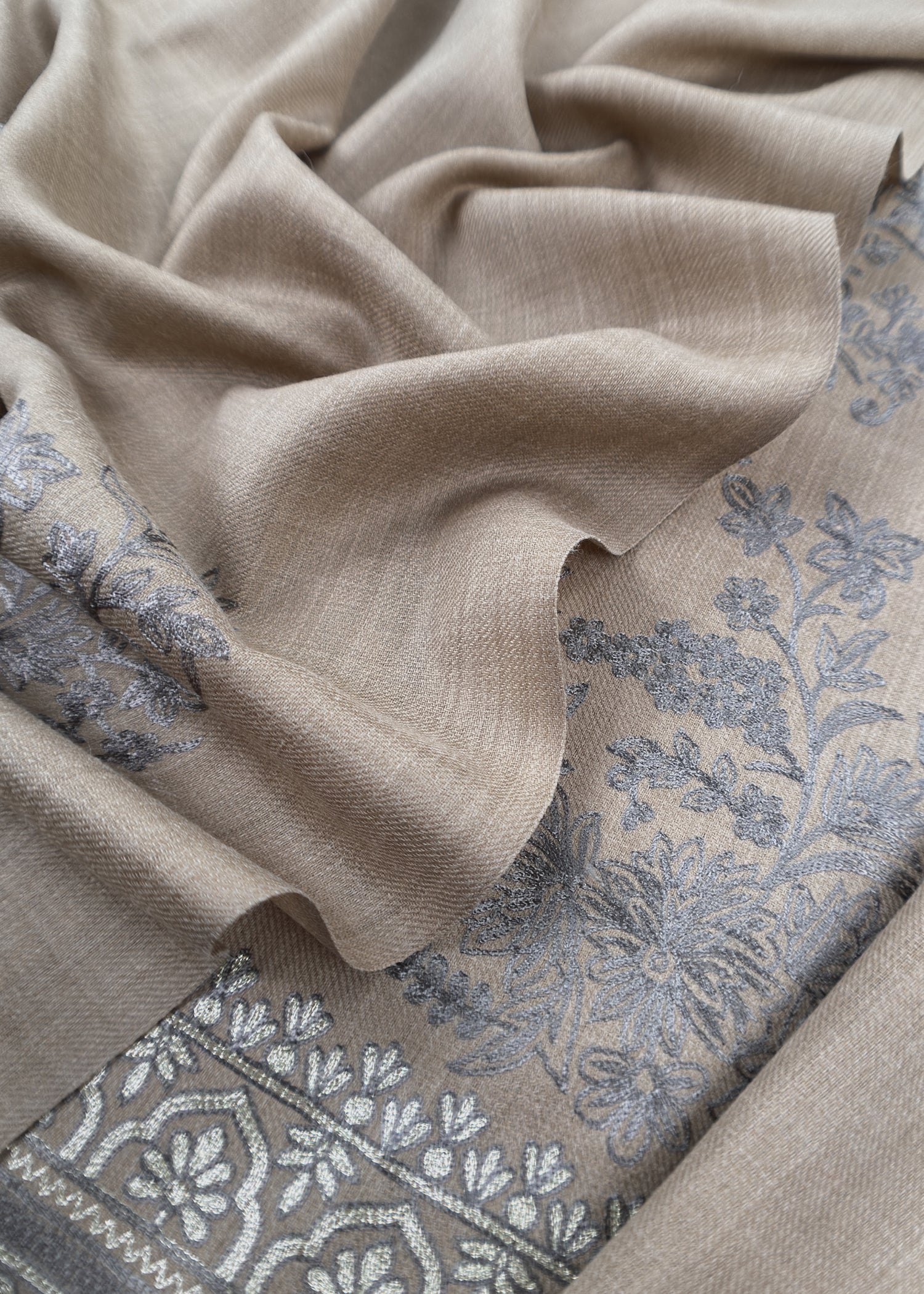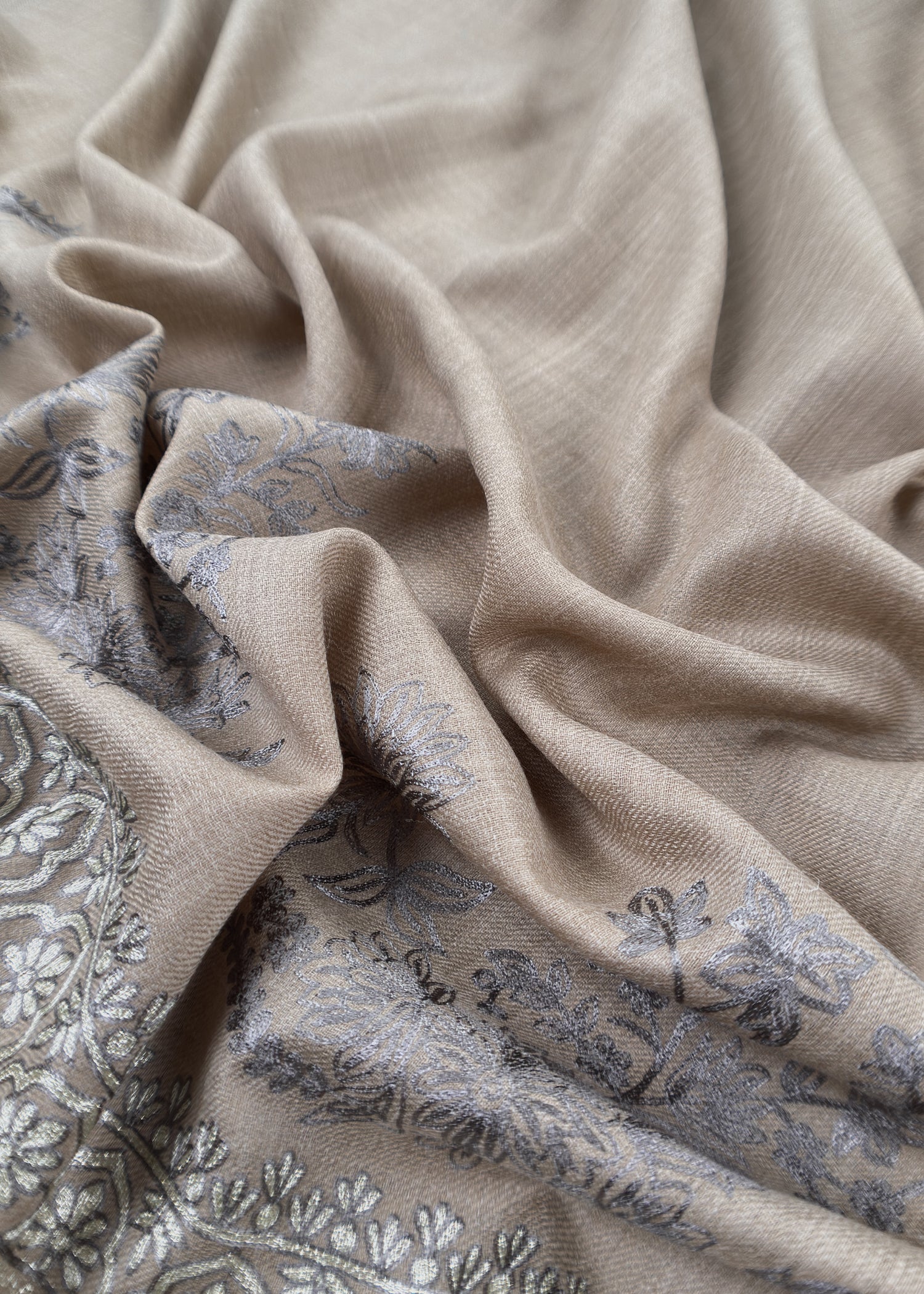 Beige Pure Merino Wool with Beautiful Aari Embroidery