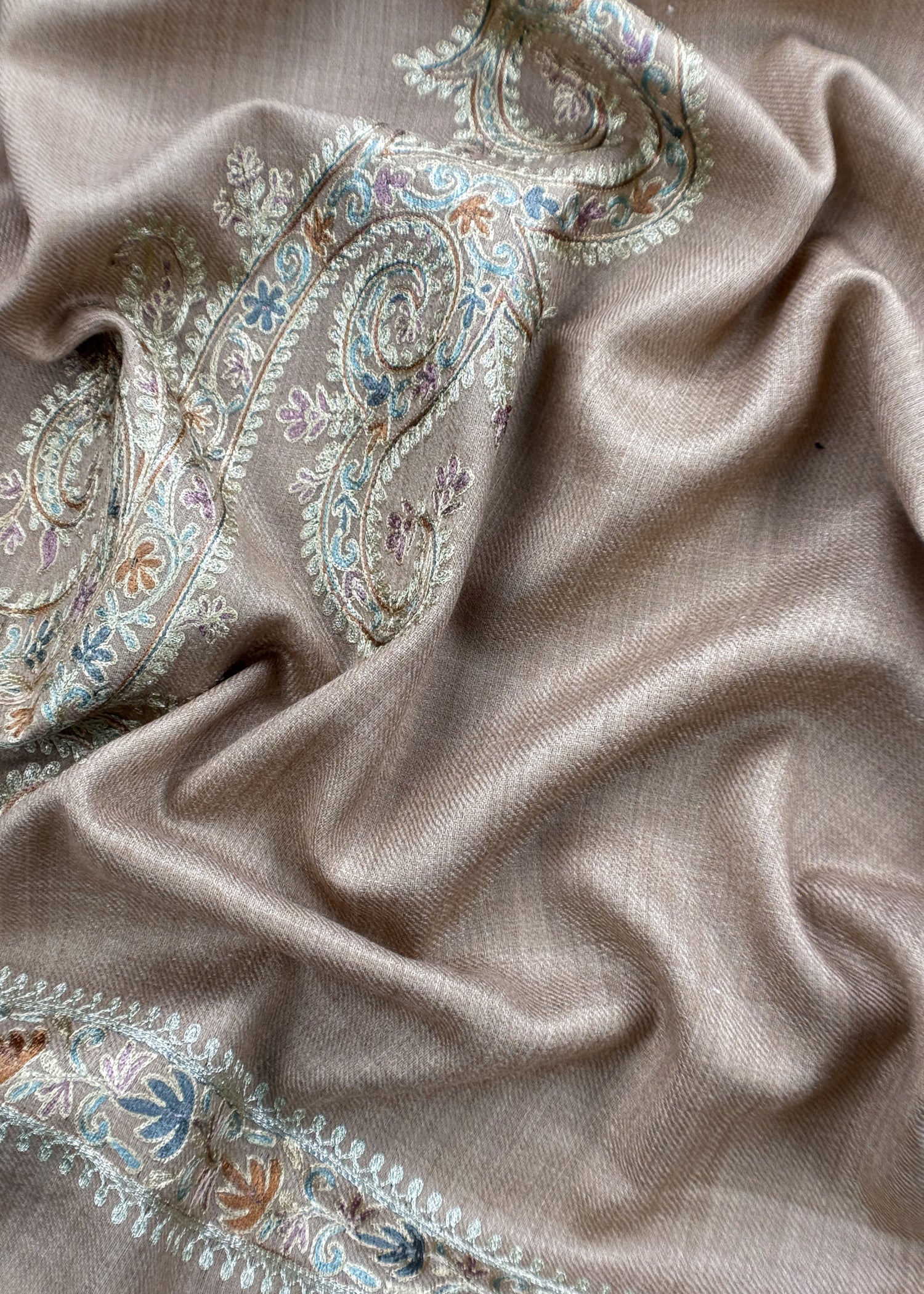 Beige Pure Merino Wool With Beautiful Aari Embroidery