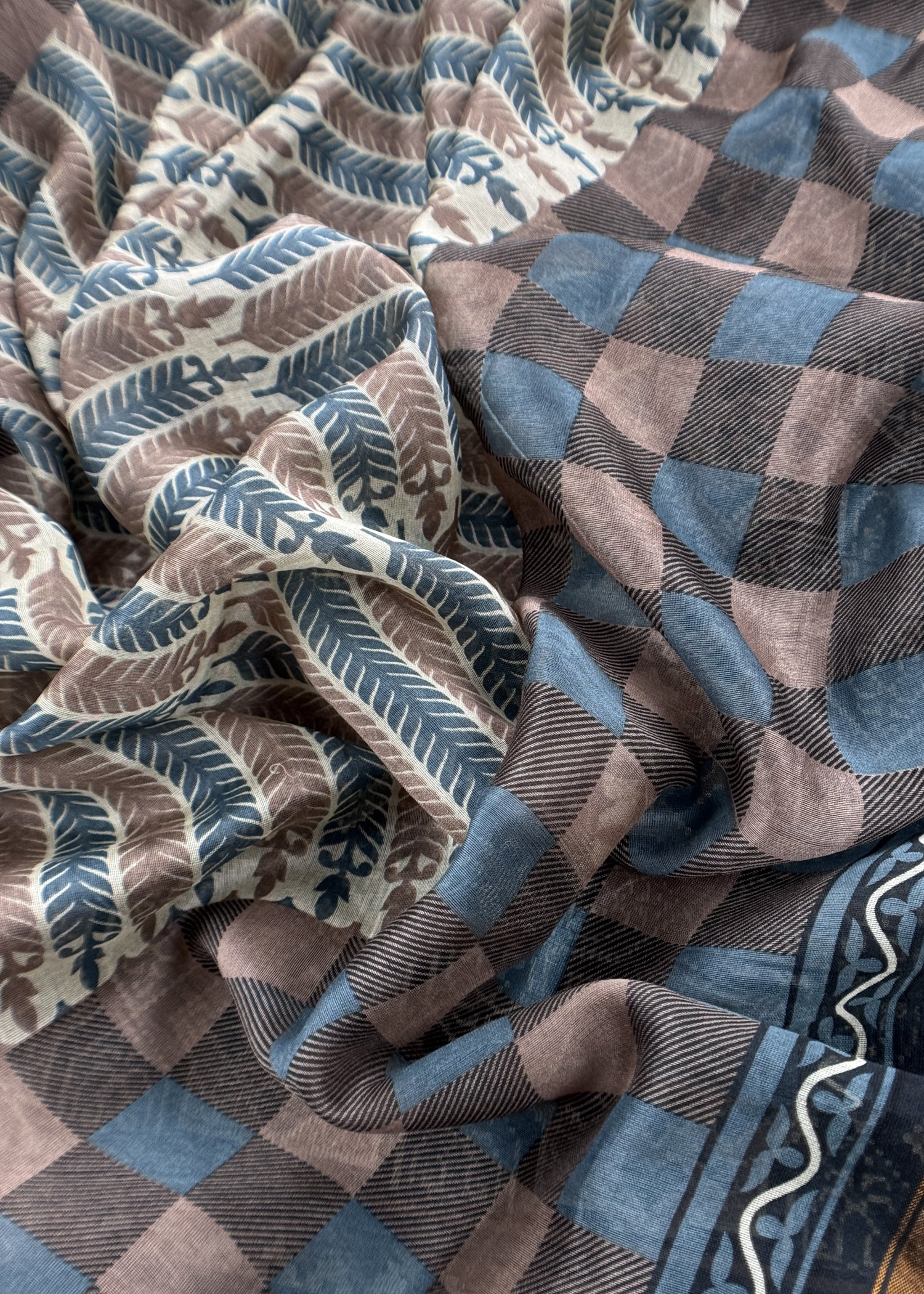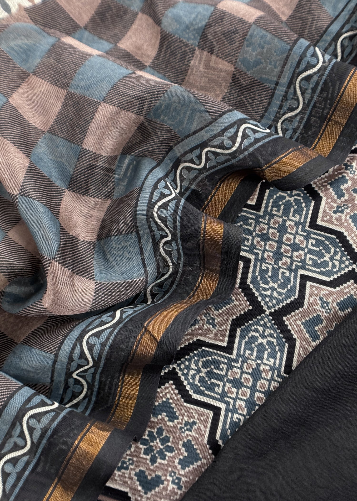 Black Ajrakh Mahehswari Silk Unstitched Suit With Dupatta