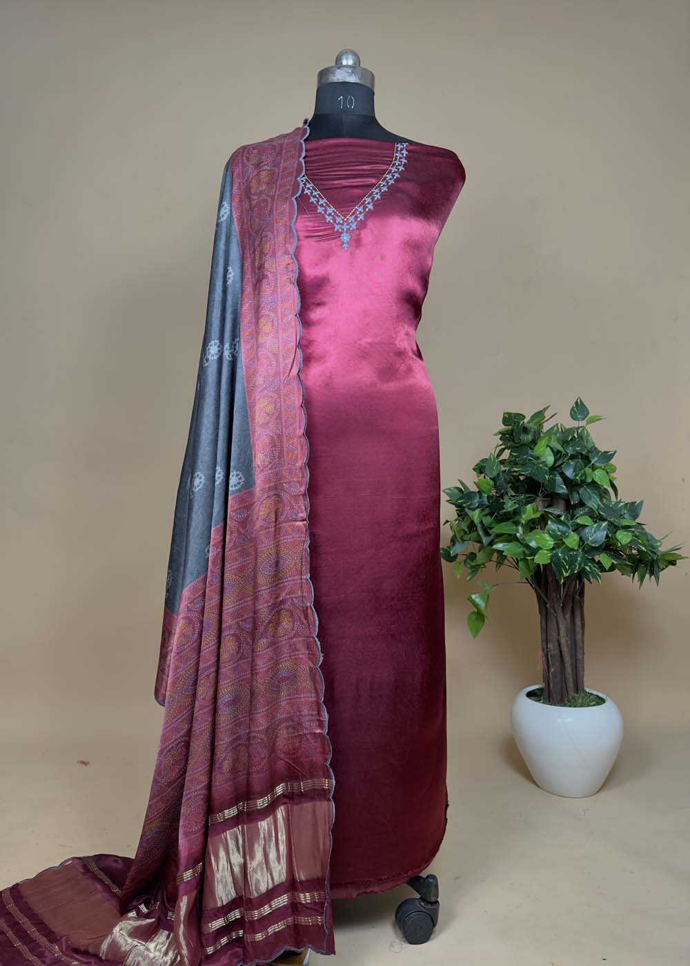 Black Gajji Silk Suit With Contrast Bandhani Dupatta
