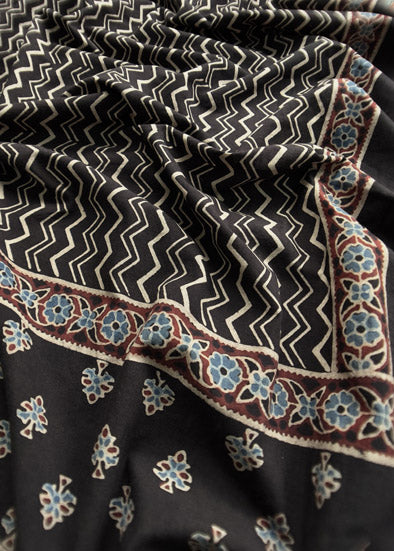 Black Handblock Ajrak Suit In Cotton