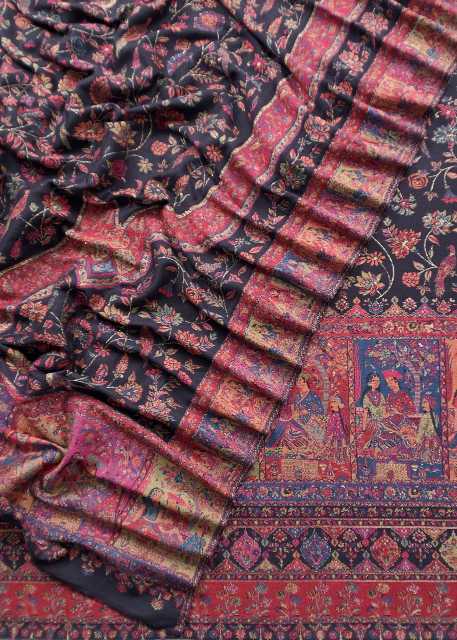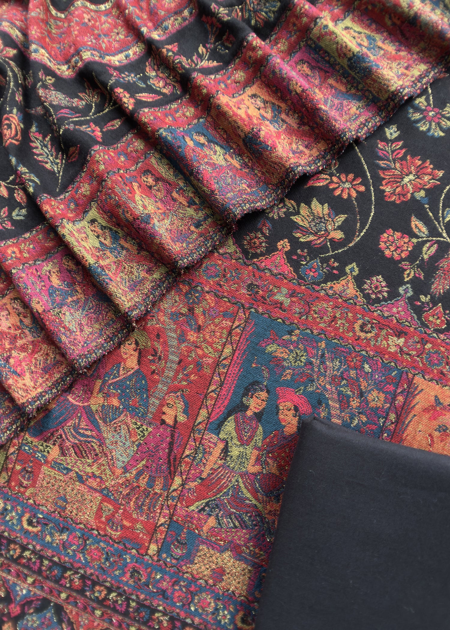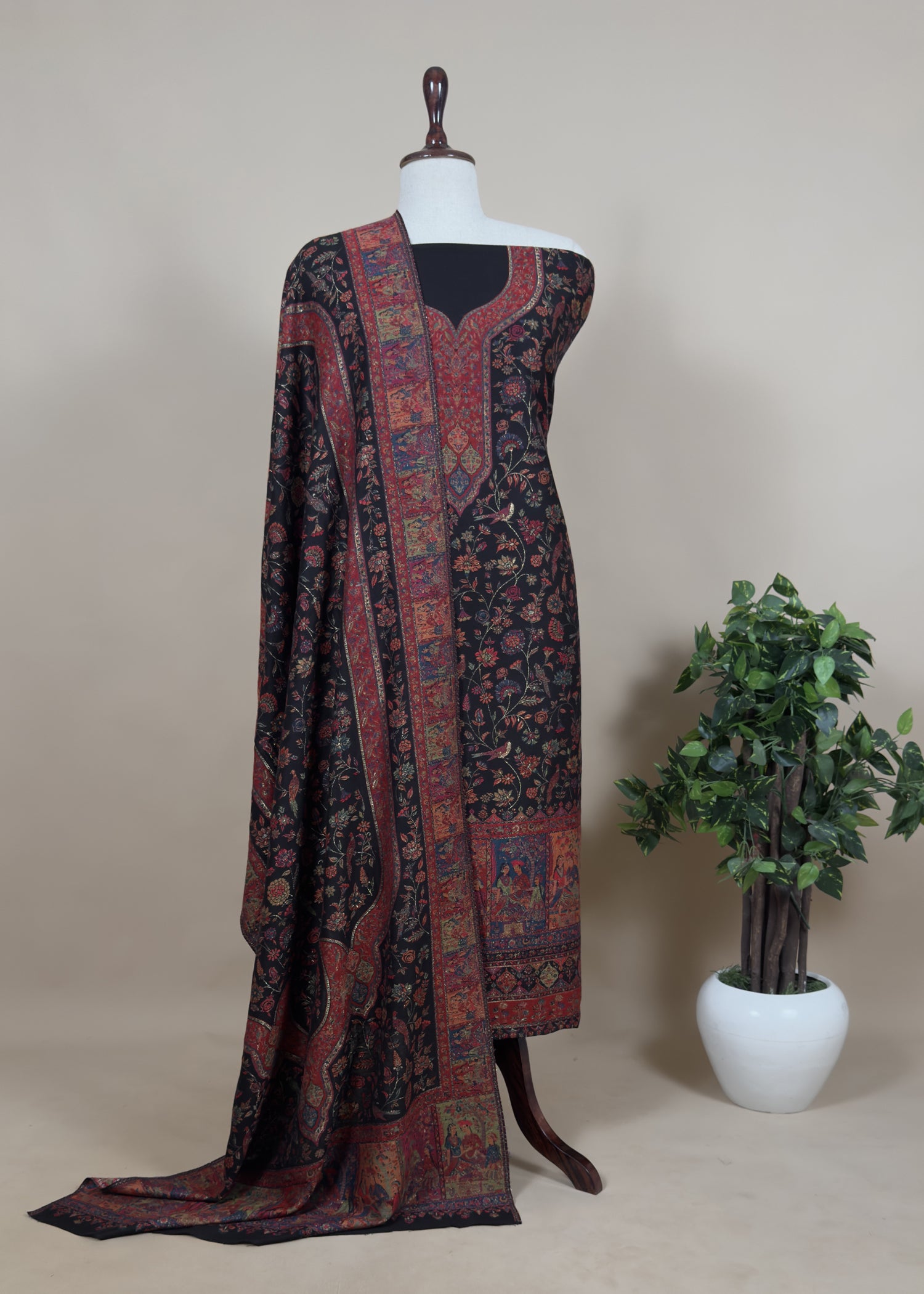 Black Pashmina Kani Silk Unstitched Suit with Dupatta
