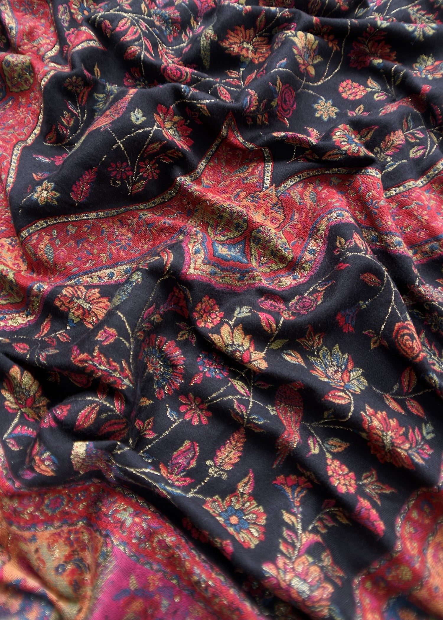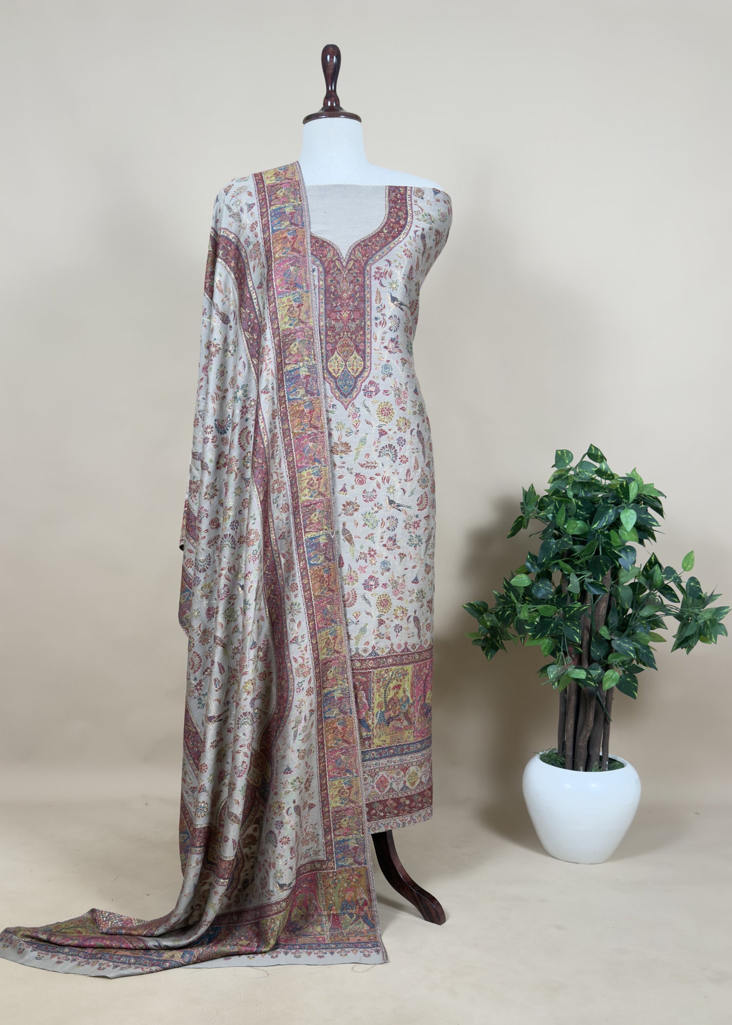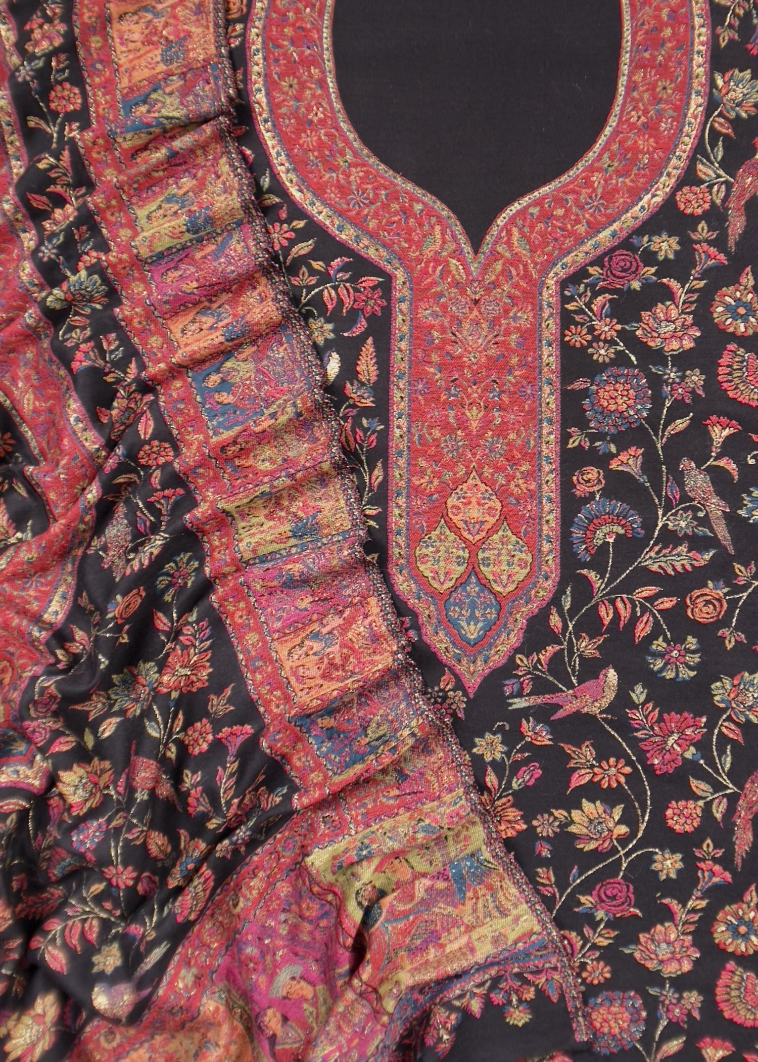 Black Pashmina Kani Silk Unstitched Suit with Dupatta