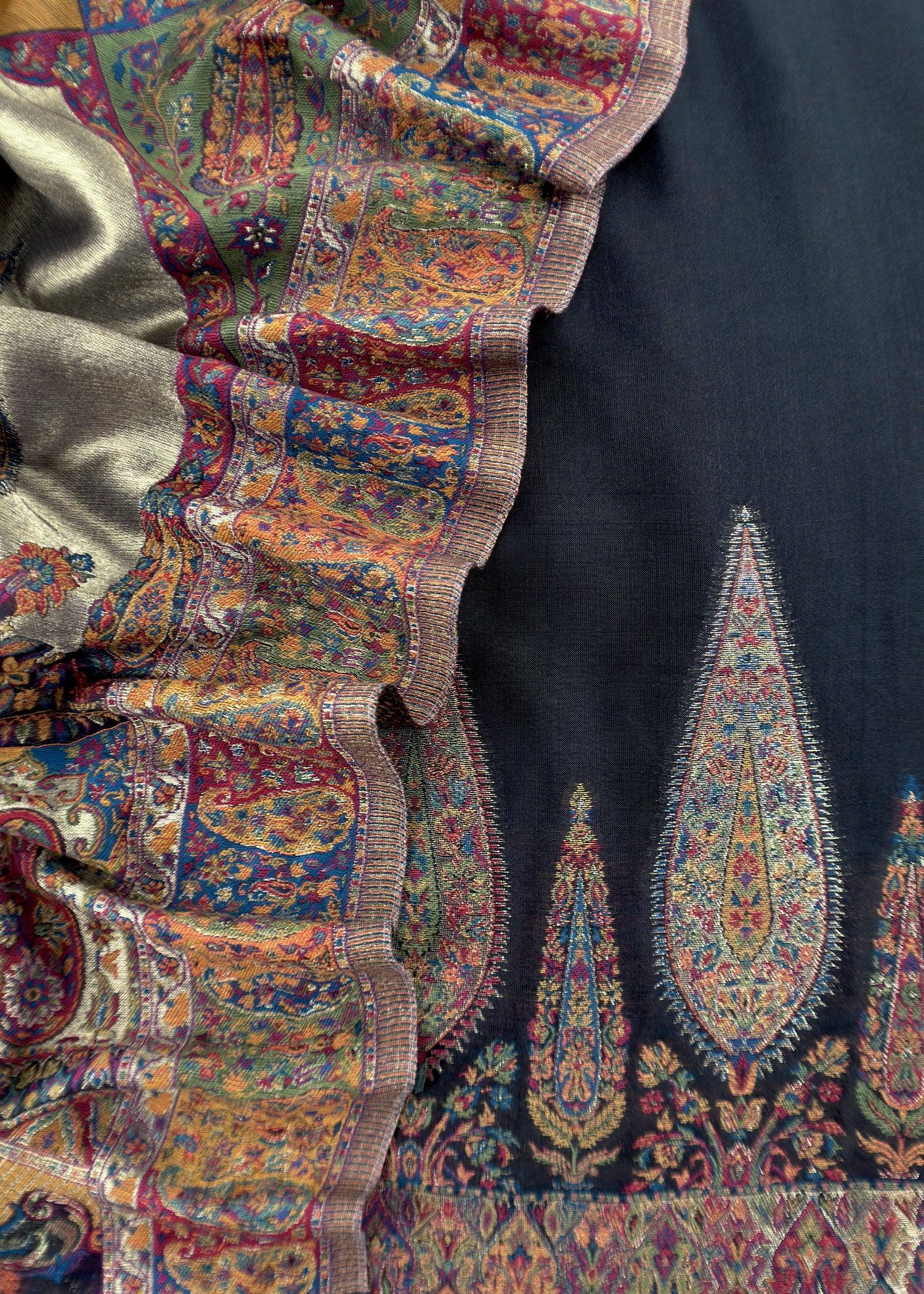 Black Premium Kani Silk Unstitched Suit With Dupatta