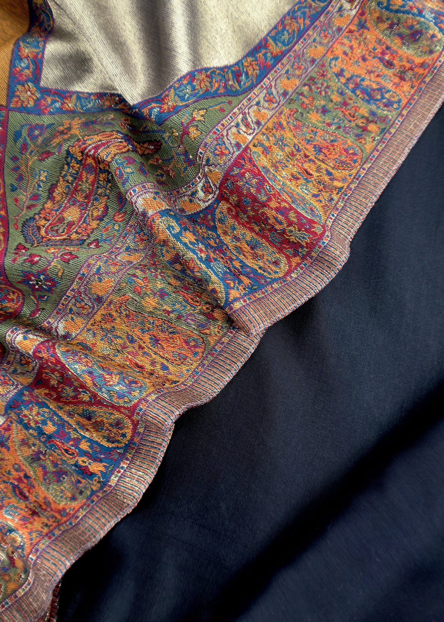 The delicate Kani weaving on the kurta and dupatta adds a luxurious touch, making it a great addition to your ethnic wardrobe or a thoughtful gift for a bride’s trousseau.