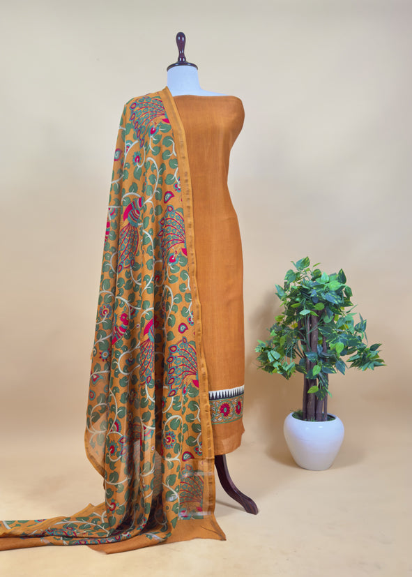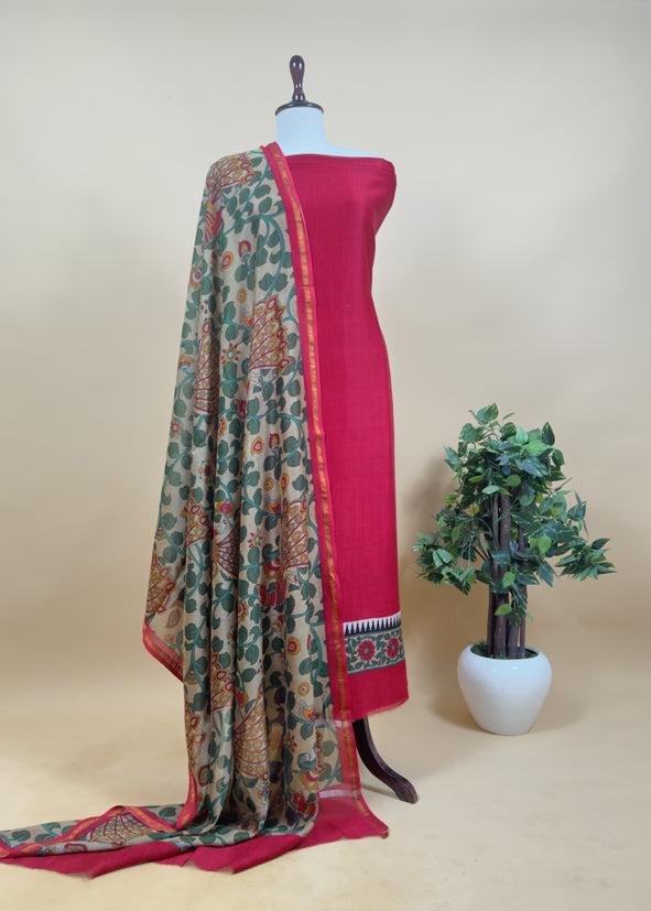 Pure maheshwari silk kurta with pure maheshwari kalamkari print dupatta and fine cotton satin bottom.