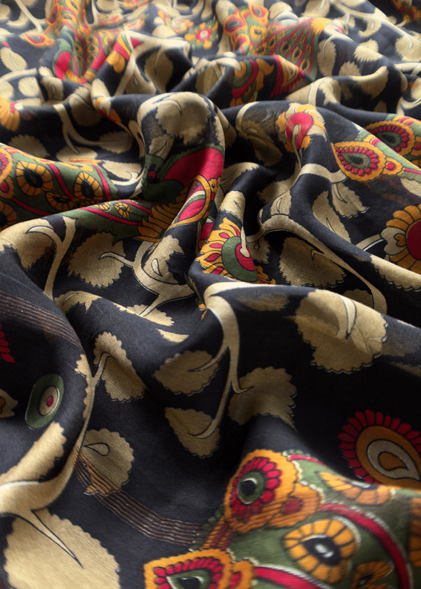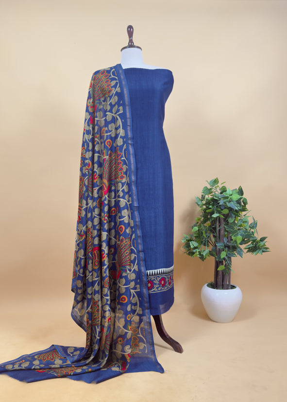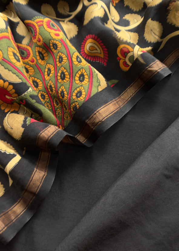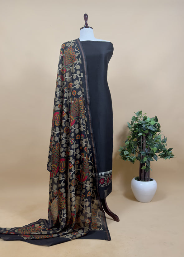 Black Pure Maheshwari Unstitched Suits With Kalamkari Dupatta