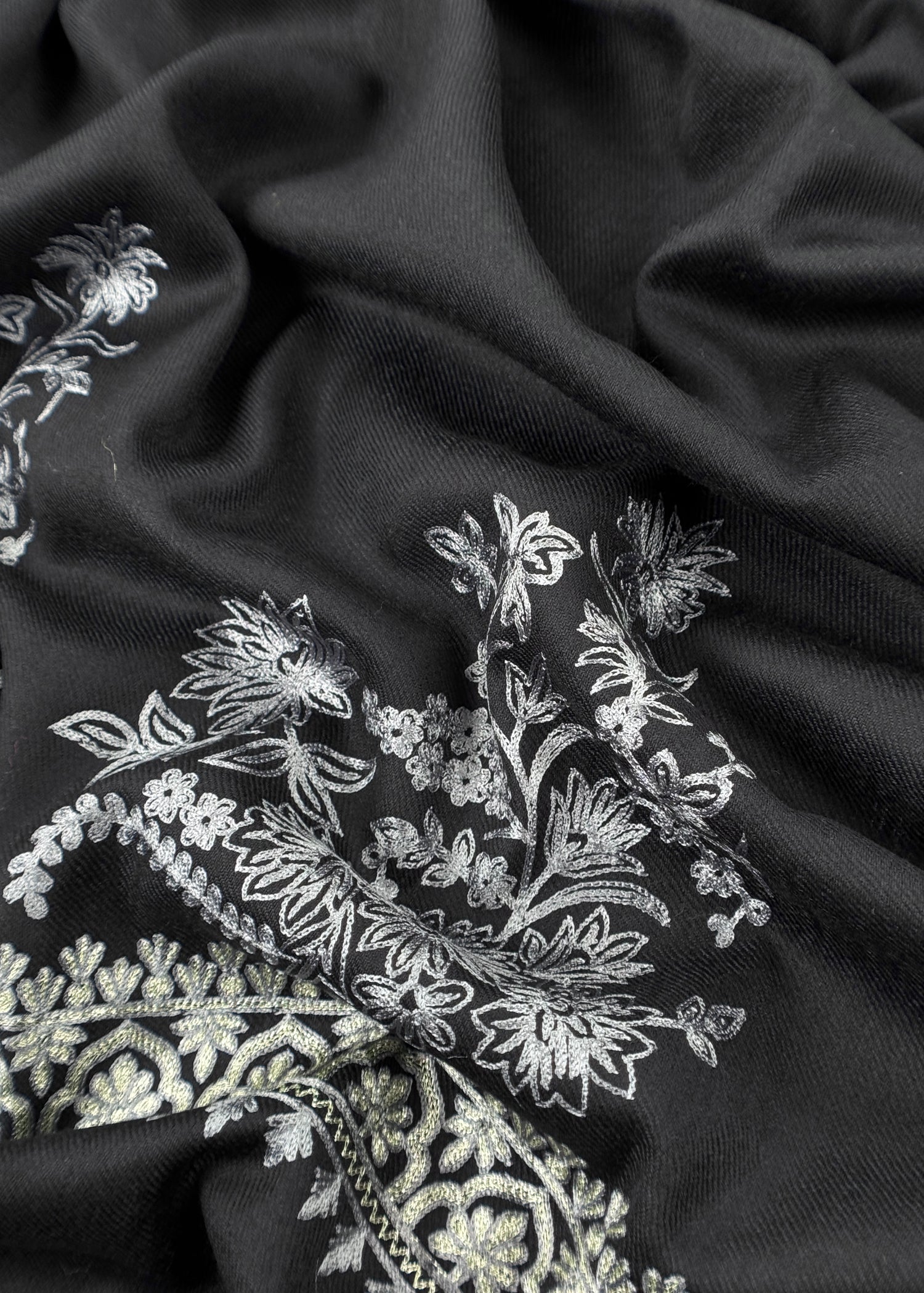 Black Pure Merino Wool with Beautiful Aari Embroidery