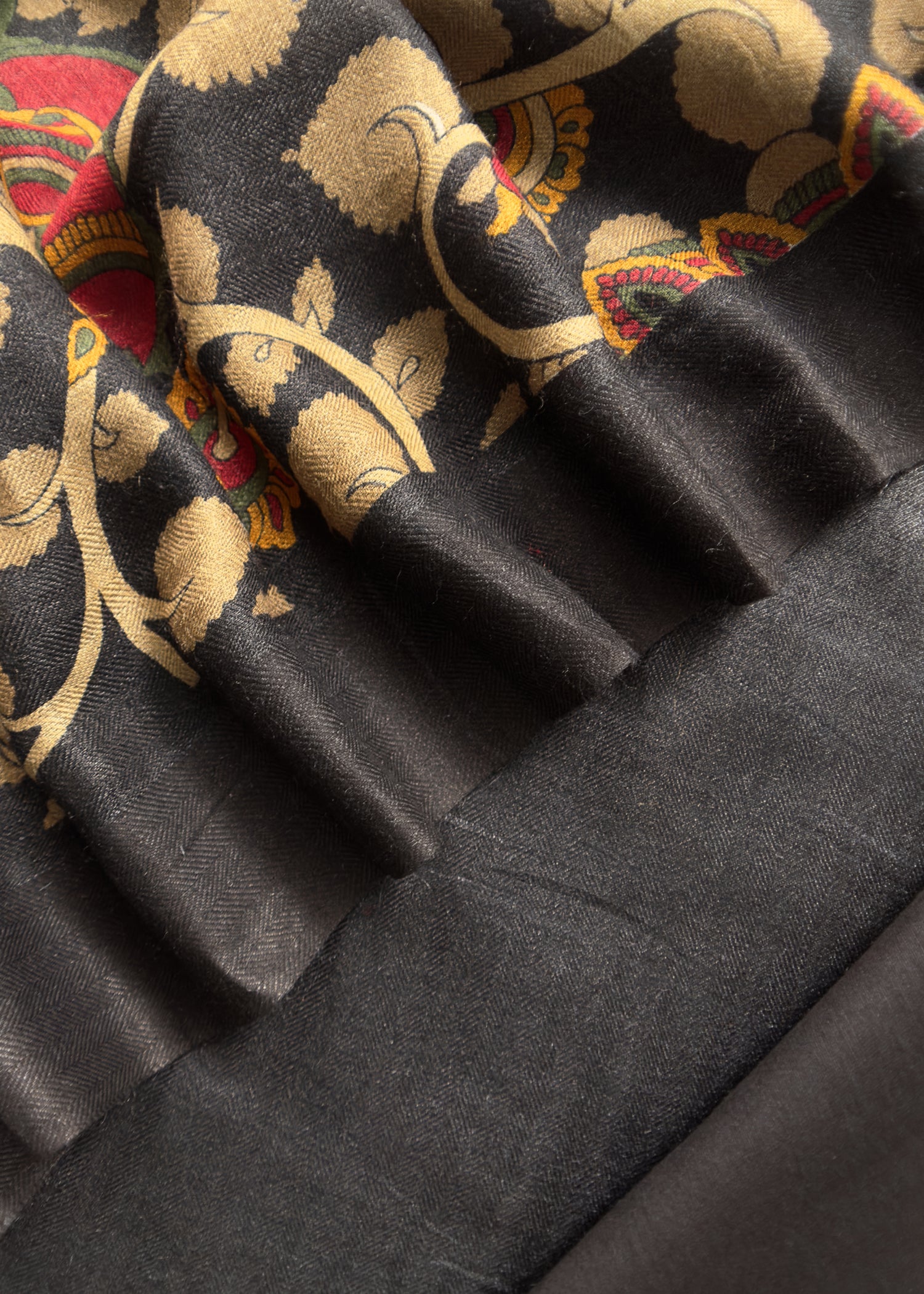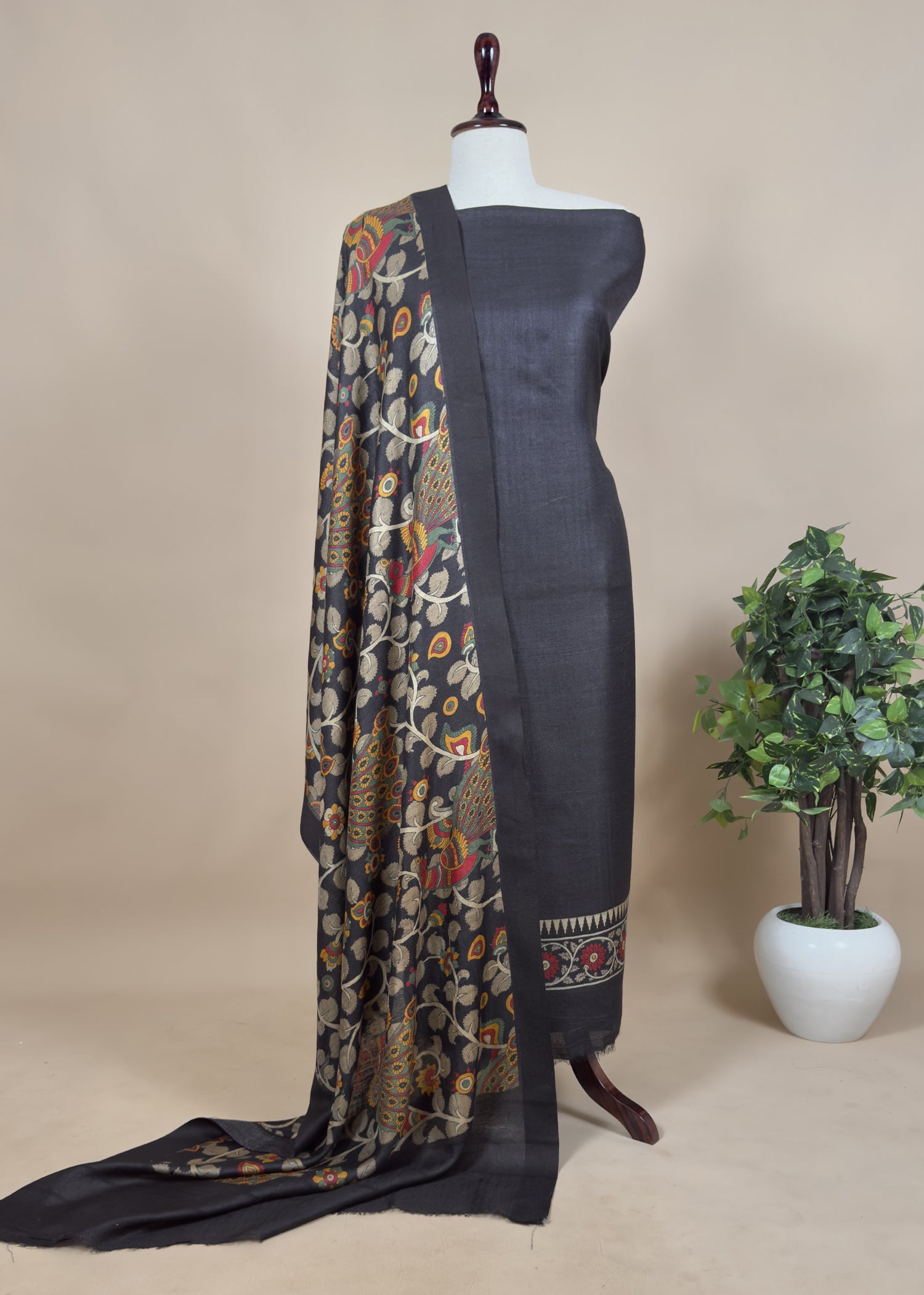 Black Pure Pashmina Unstitched Suits With Kalamkari Dupatta