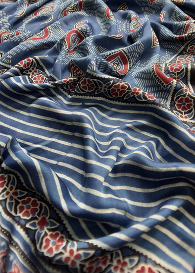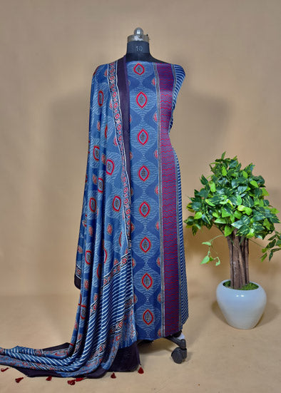 Blue Ajrakh Modal Suit With Dupatta