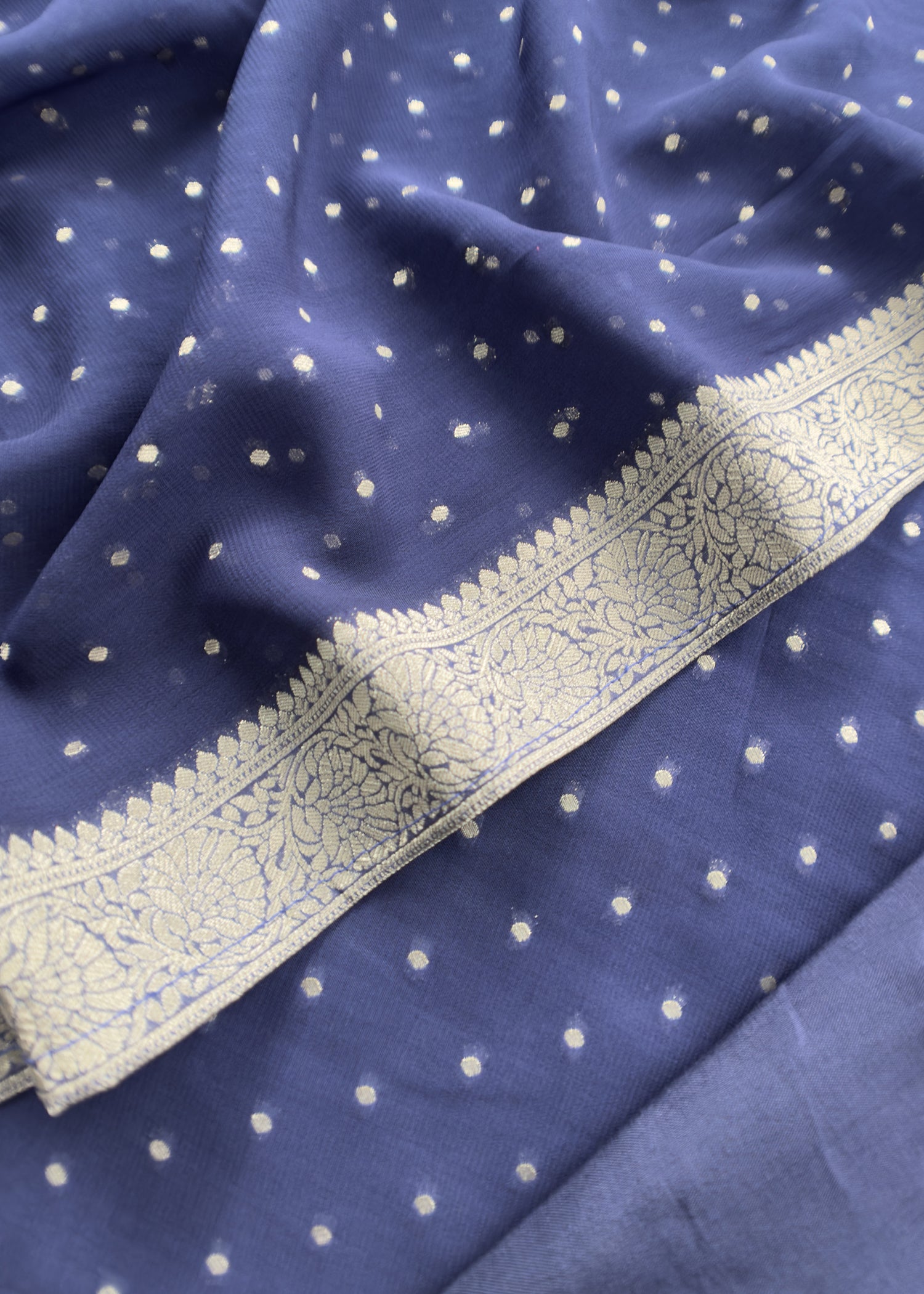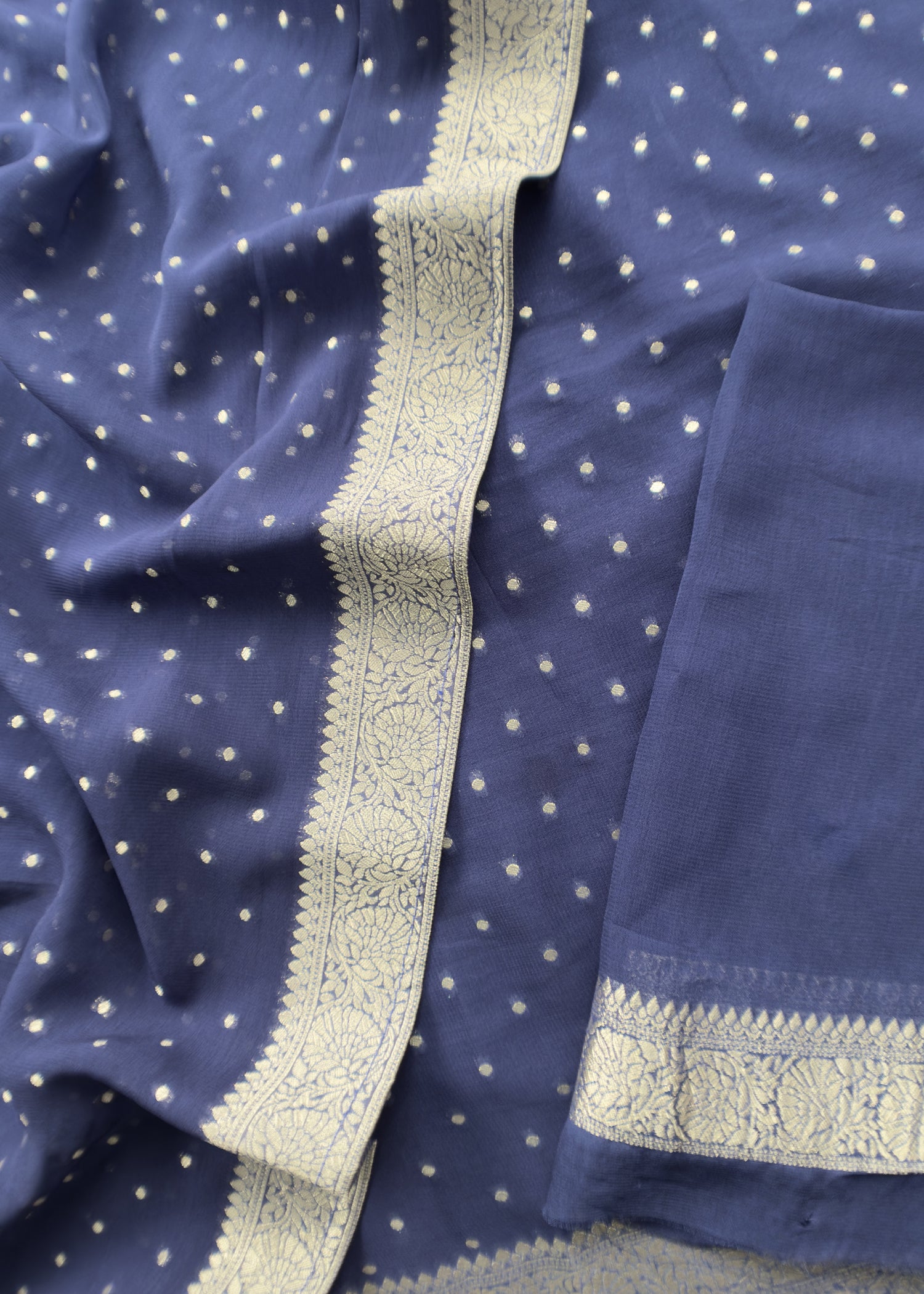 Blue Banarasi Georgette Suit With Jacquard Weaving