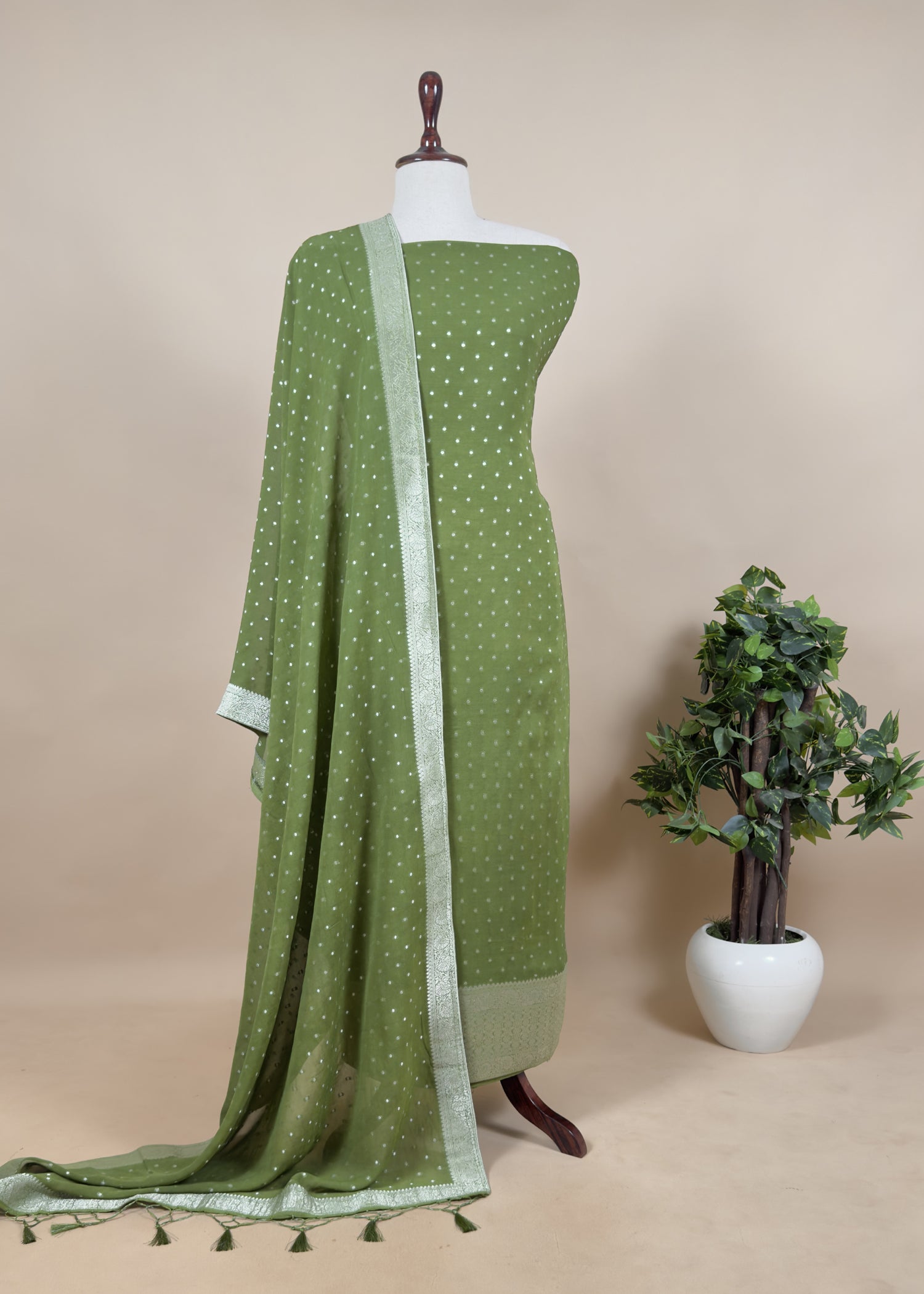 Perfect for creating traditional and luxurious ethnic outfits, this Banarasi suit in Georgette is your go-to choice for special occasions and wedding celebrations.